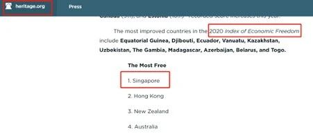 - 同時,傳統(tǒng)基金會(The Heritage Foundation)近日公布了2020年《經濟自由度指數》報告顯示,中國香港保持了25年的全球最自由經濟體制地位,今年被新加坡成功取代。