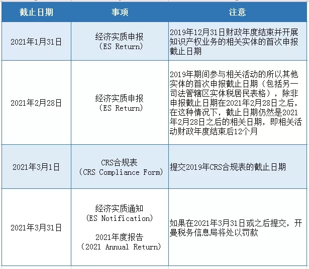 目前相關(guān)日期即將截止,除了2020年開曼實體經(jīng)濟實質(zhì)申報,還有關(guān)于CRS合規(guī)表的遞交、與2021年度的經(jīng)濟實質(zhì)通知與年度報告,應注意時間,提前做好相關(guān)準備,主動申報與積極參與合規(guī)事項,相關(guān)服務可咨詢我們。