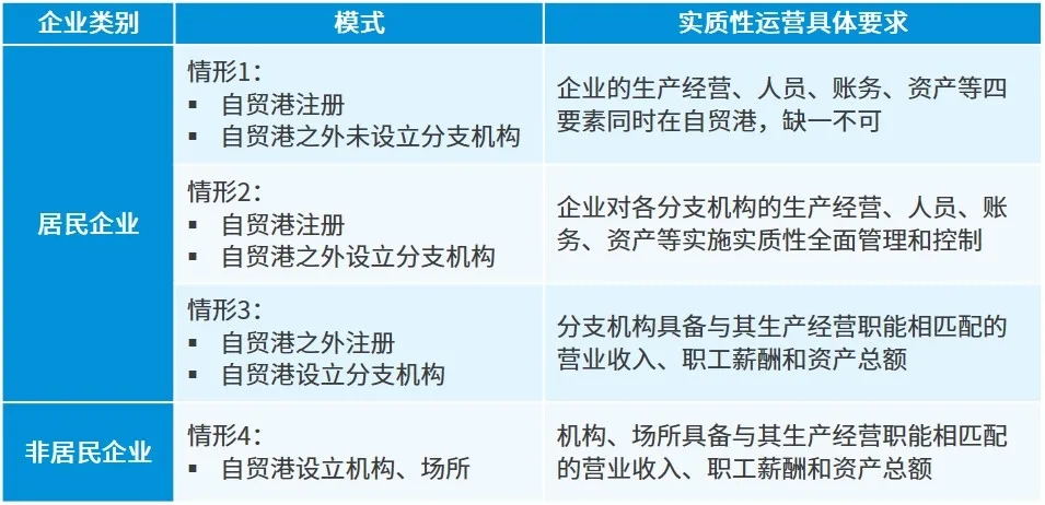 對享受自貿(mào)港企業(yè)所得稅優(yōu)惠政策的不同適用對象,1號文的第一至四條逐項明確了實質(zhì)性運營的具體要求。