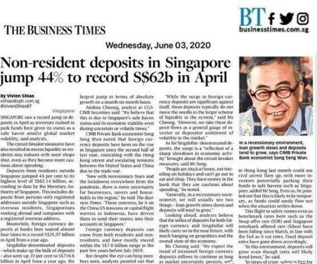 - 根據(jù)新加坡金融管理局的數(shù)據(jù)顯示,今年4月份新加坡本地銀行的外幣存款相比去年同期增長(zhǎng)了近三倍,達(dá)到了創(chuàng)紀(jì)錄的270億新幣,而非居民存款也猛漲了44%至620億新幣,達(dá)到了1991年有記錄以來的最高水平。